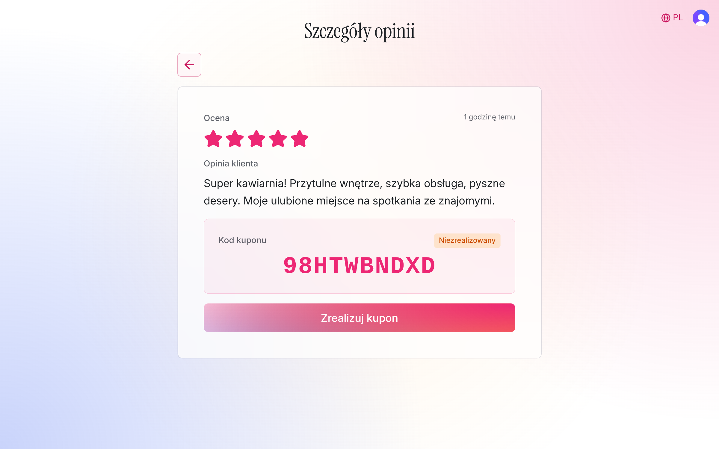 Przypomnij zadowolonym klientom o podzieleniu się opinią publicznie. Buduj reputację online.Weryfikacja kuponów